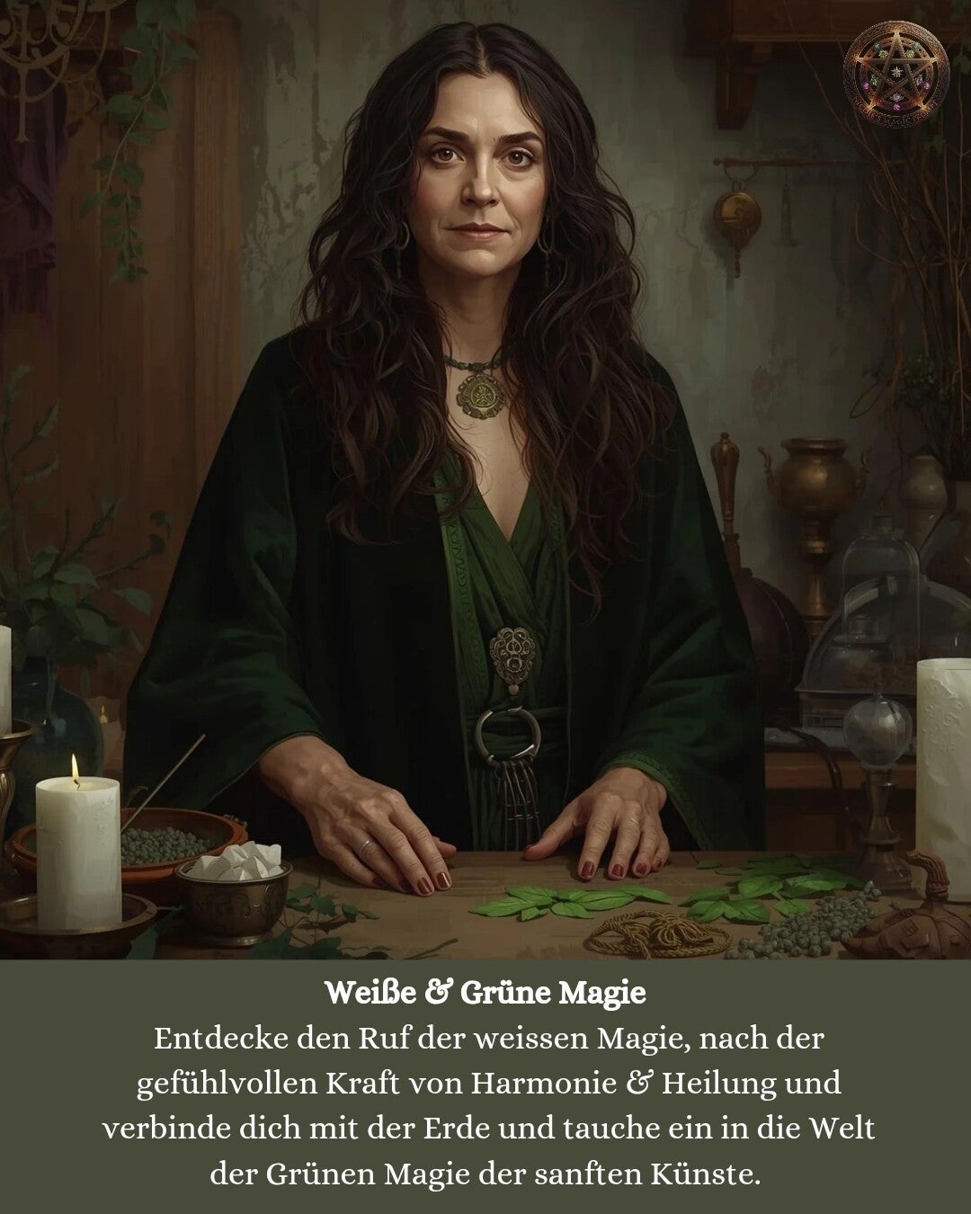 Wenn der Mond am Himmel steht und die Kräuter im Garten leuchten, ist die Zeit der Grünen Magie gekommen 🌿. Sie ist das Flüstern des Waldes, das Wissen um Wurzeln und Öle. 🍃 Doch auch die Weiße Magie 🤍 ist ein Geschenk – ein Ruf nach Heilung und Harmonie. Zwei Wege, ein Ziel: Positivität und Einklang.✨