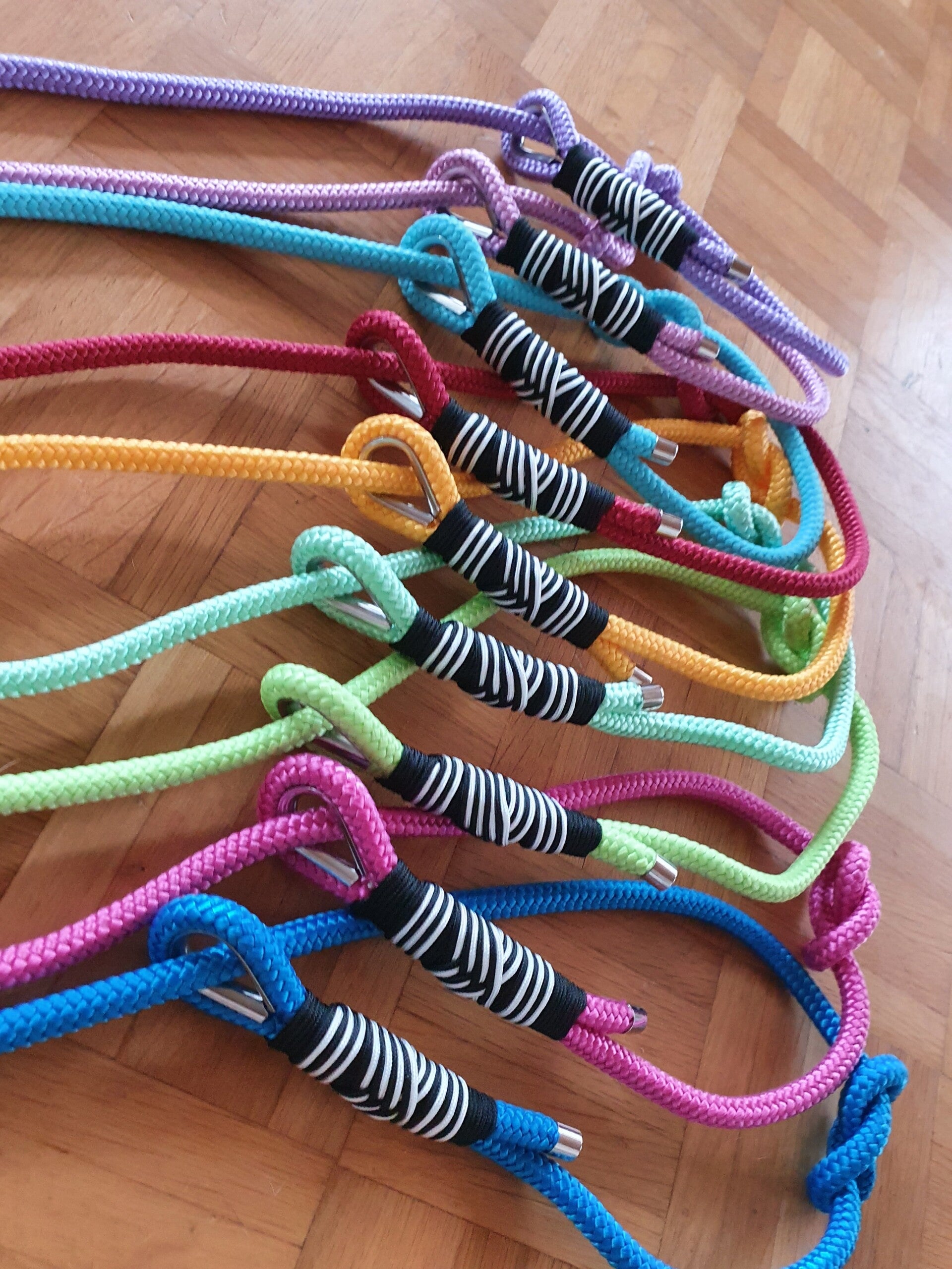 Retrieverleinen aus 10 mm Tau in Wunschfarben einfach oder 2fach|3fach verstellbar und farblicher Takelung.